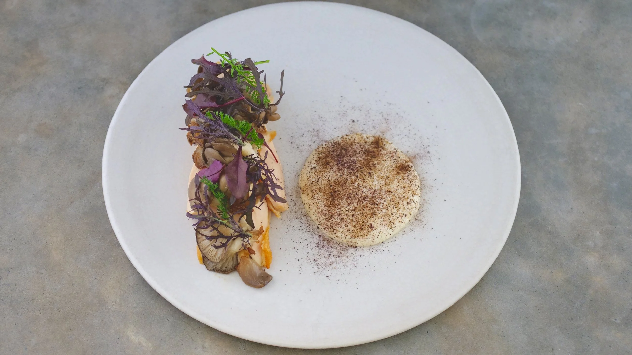 CHICKEN BREATS, OYSTER MUSHROOM, EPOISSES, PERILLA, RED ELK & YARROW