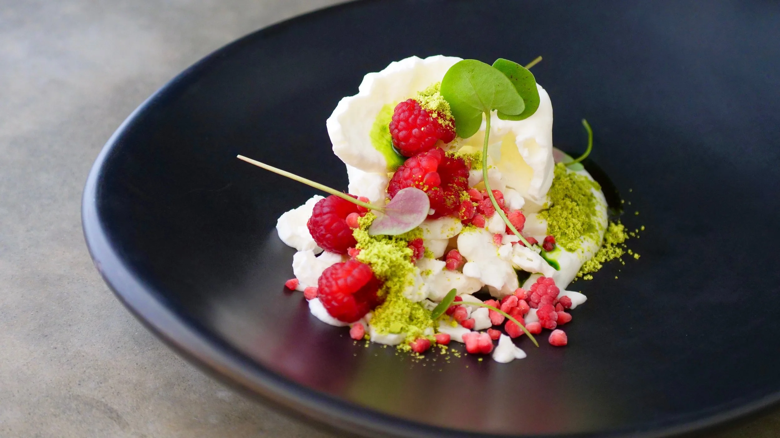 FROZEN SHEEPS YOGHURT, RASPBERRY, PISATCHIO, TARRAGON & SORREL
